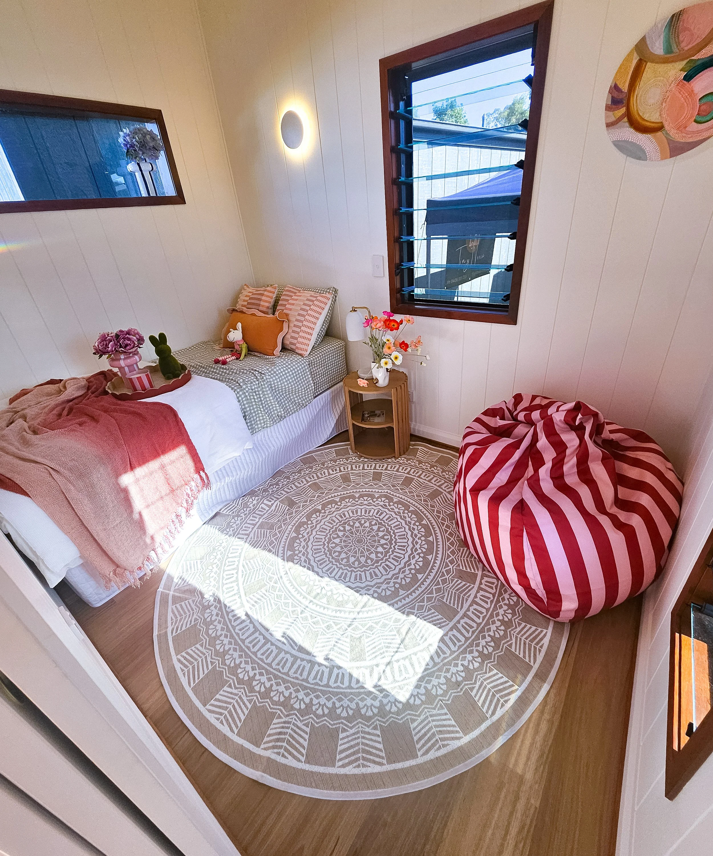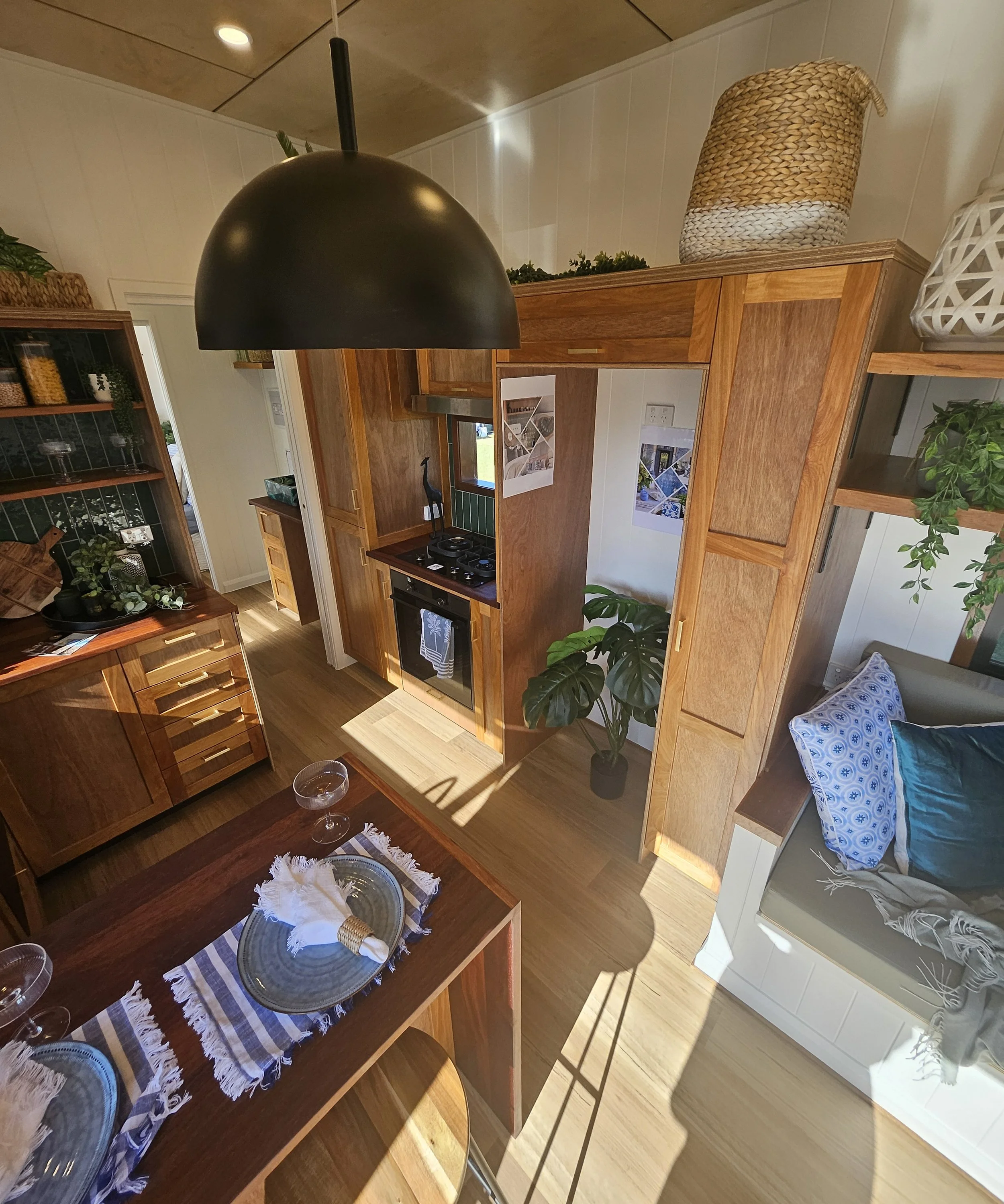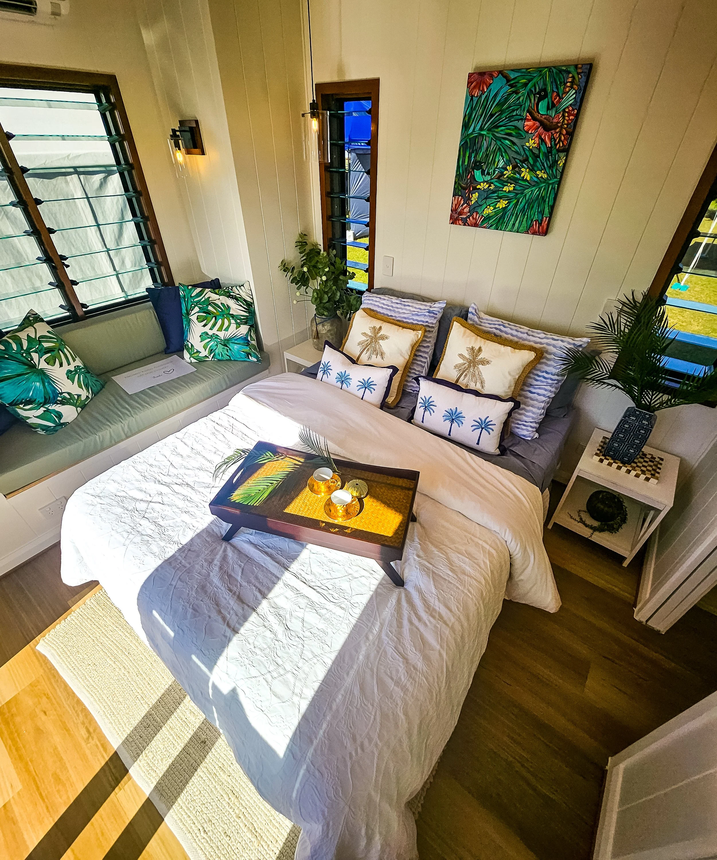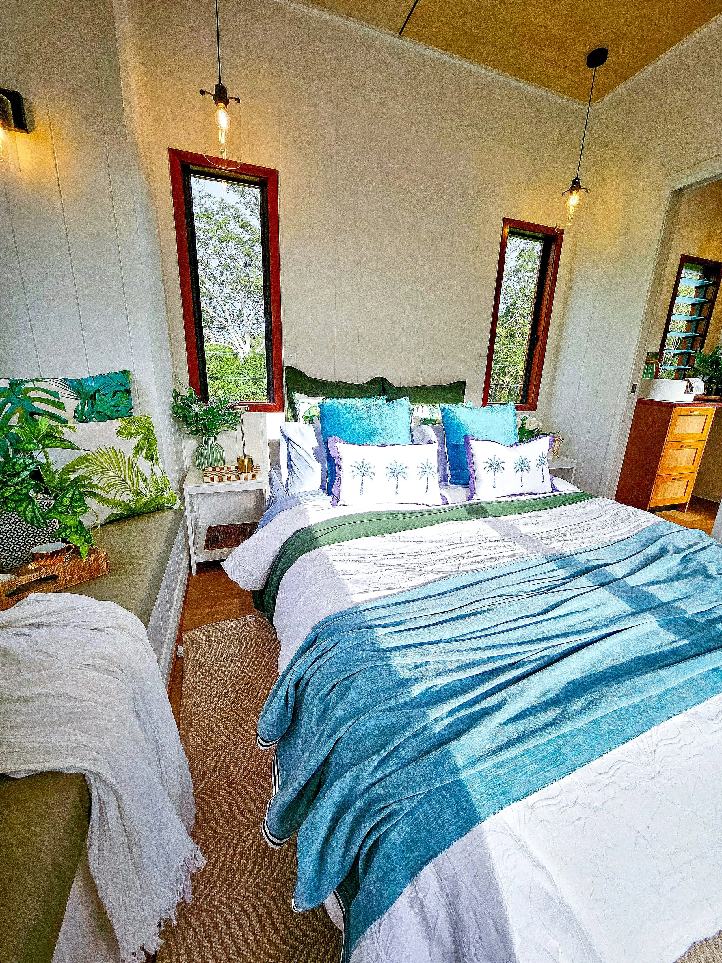 LITTLE COVE - Based on the popular Bangalow design this is a single level home, furnished like a beautiful apartment, with a full size gourmet kitchen, stunning queen bedroom with a window-seat and large Rosewood sliders, walk in tiled shower. Lounge area with comfortable built in seating. A second bedroom set up as a bunk room or as extra space for a dedicated craft area, studio or guest room.